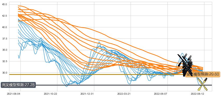 ➣ 34小时均线于(2022-07-13: 31.20)形成【死叉】基于【死叉历史模型】预测死叉后最低波谷价格: 27.69, 死叉后最低价格26.77,已经下跌超出预测最低波谷价格, 预期反弹