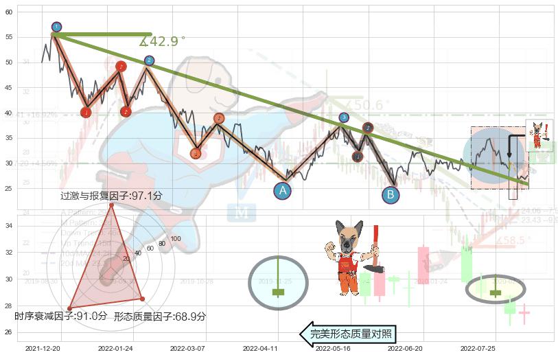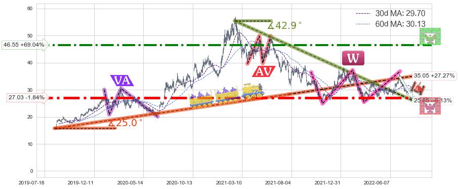 ♘ 支撑价格位27.03,可信任强度93.07%,距离最后交易2022-08-12形成的收盘价格27.54相差 -1.84%