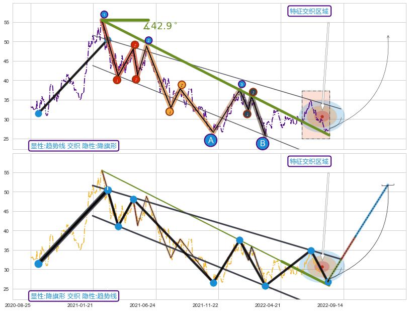 ➢ 最后的下跌趋势2021-02-10至2022-04-22:存在突破迹象,后续小反弹或者反转上涨