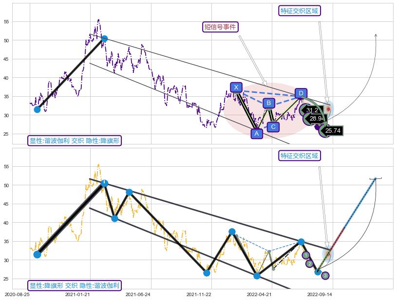 ➢ 谐波伽利属【短级别信号事件】降旗形属【长级别信号事件】长短周期组合信号事件, 短长事件长度比23.18%
