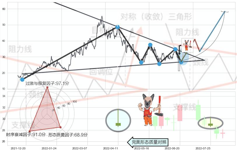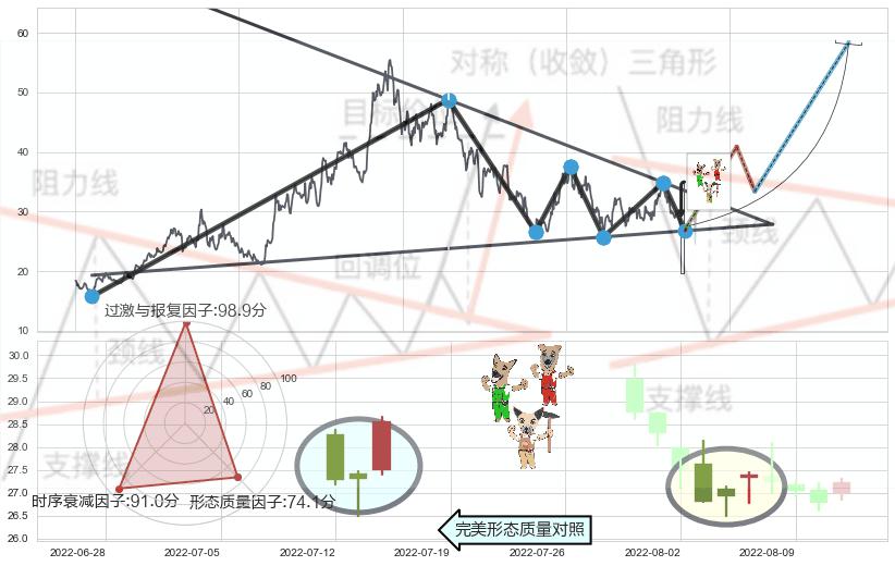 ➣ AI智能: 预测【多空区域上下窄幅震动→价格波动日益狭窄→多方占优】对称三角形中继整理向上突破,预测将在2022-09-20突破颈线, 演变成上升通道