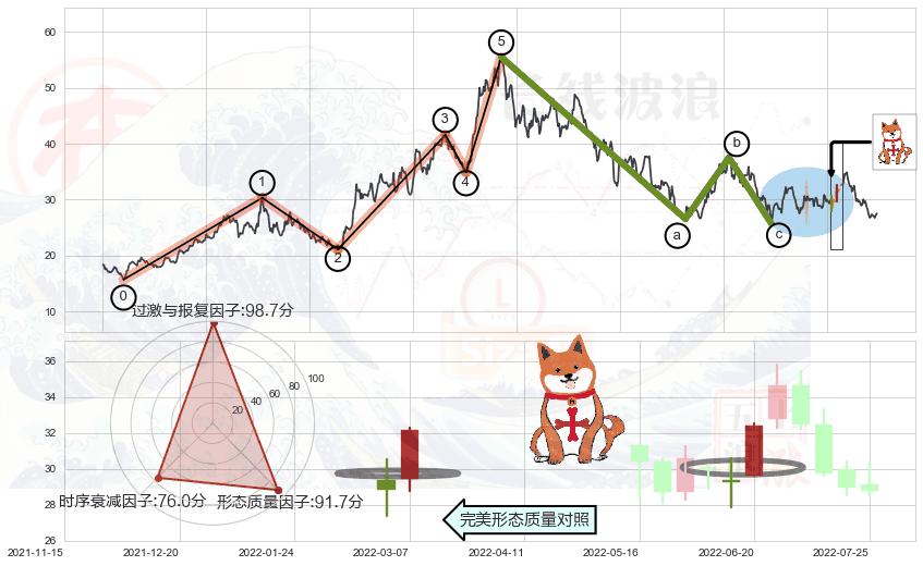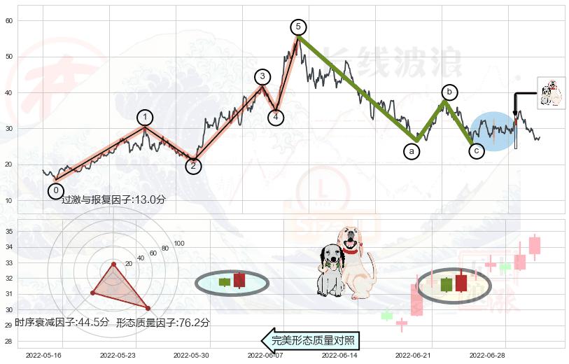 从2022-07-04至2022-08-12,共包含30个交易日,阶段股价下跌-23.01%,阶段股价变动位移路程比: 1 : 2