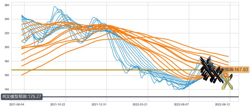 ➢ 40小时均线于(2022-07-08: 163.39)形成【死叉】基于【死叉历史模型】预测死叉后最低波谷价格: 135.69, 死叉后最低价格145.20,尚未达到预测最低波谷价格, 预期继续下跌