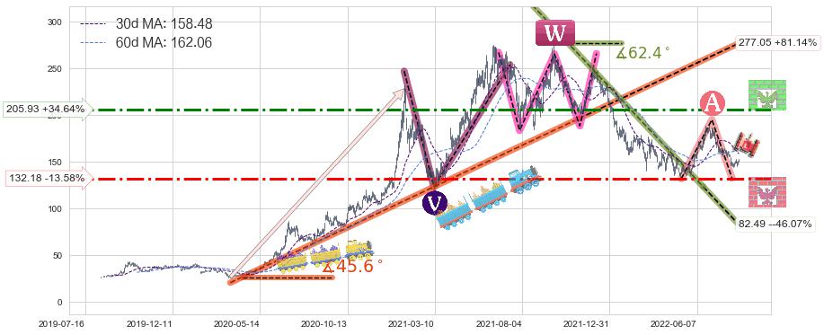 ➢ 【仅预测突破】最后价格:152.95与预测突破价格:192.82→【空间中等】后续最小【反转】第一目标价格→(2022-09-21: 236.86 )