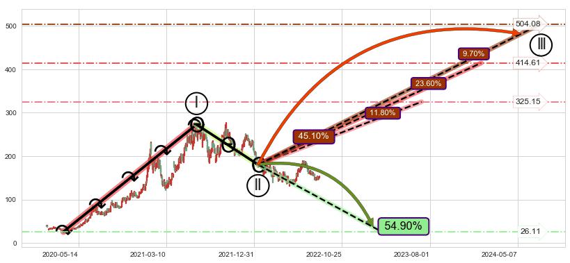 ➢ 大趋势走坏(跌破5浪起点位置)概率54.90%