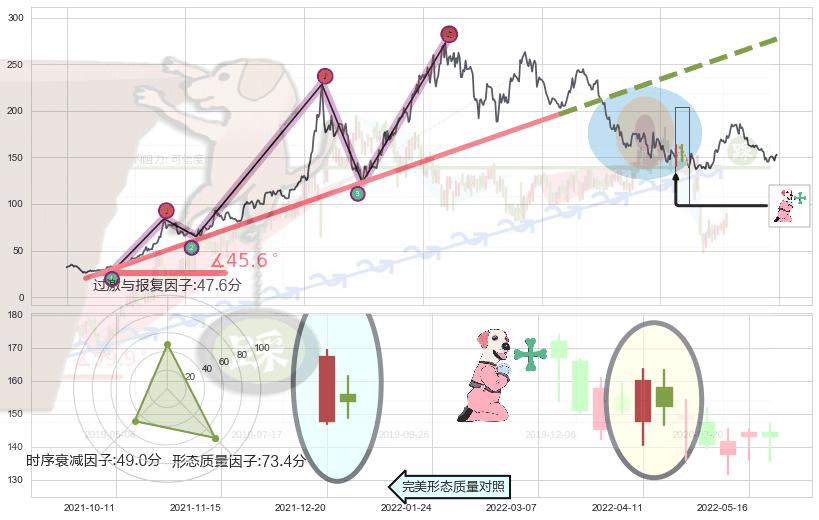 从2021-06-22至2022-06-16,共包含239个交易日,阶段股价下跌-33.17%,阶段股价变动位移路程比: 1 : 17,下跌趋势角度: 62.4
