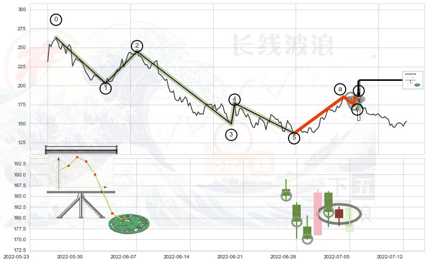 ➣ 波浪理论:猜想击穿破位c点后继续下跌 → 下跌 → 风险信号 → 小趋势跟踪