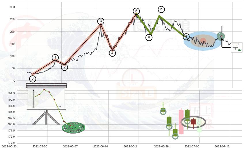 ➢ 循环浪继续向上【最低】位置(2023-07-05, 325.15),匹配聚类样本比例26.17%, 可能性概率11.80%