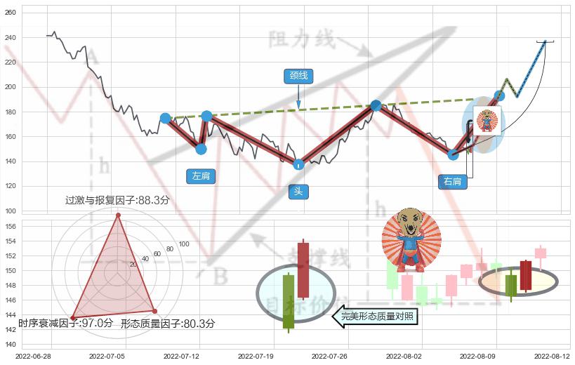 ➣ 【未确认突破,预测即将形成突破】头肩底起点:2021-12-10, 预测突破点:2022-08-26,形态共174交易日