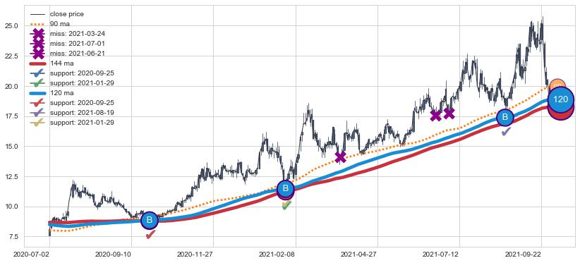 ➣ 21小时均线于(2022-08-11: 14.15)形成【金叉】基于【金叉历史模型】预测金叉后最高波峰价格: 15.87, 金叉后最高价格14.48,尚未达到预测最高波峰价格, 预期继续上涨