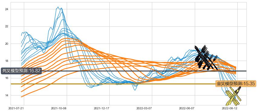 ➣ 60小时均线于(2022-06-21: 18.18)形成【死叉】基于【死叉历史模型】预测死叉后最低波谷价格: 16.94, 死叉后最低价格13.23,已经下跌超出预测最低波谷价格, 预期反弹