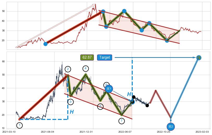 ➣ 最小中继整理涨幅→𝐇: 33.10 (𝐇旗杆的长度:旗杆起点→顶点)