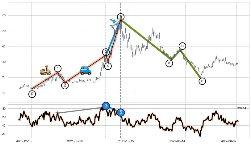 ➣ 第一, 三, 五浪上涨动能逐渐【增强变大】,趋势不断加固