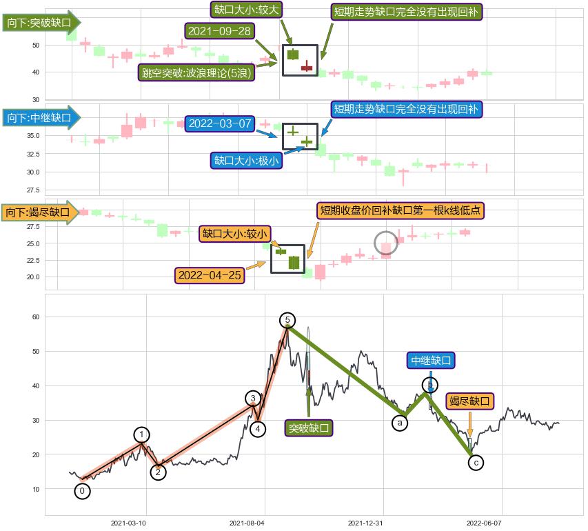➢ 2022-04-25形成:向下跳空【竭尽】缺口