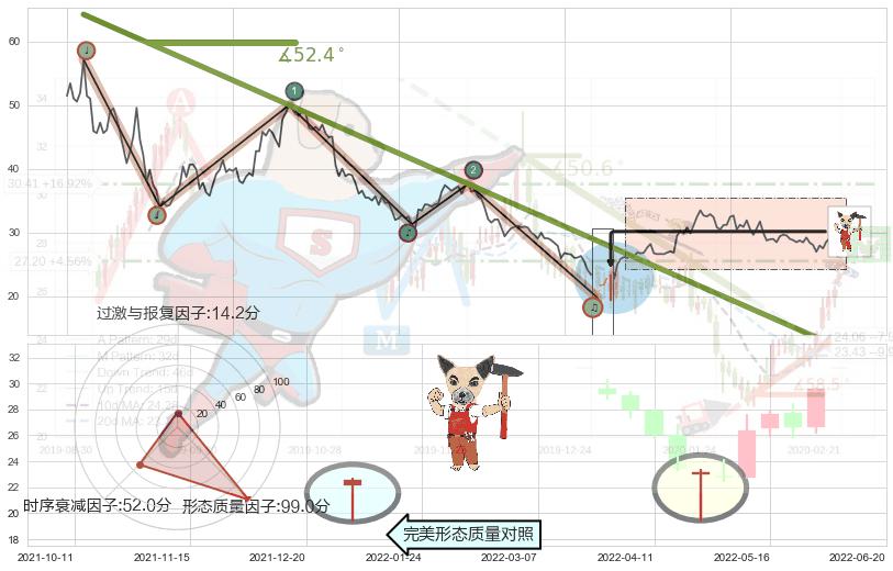 ➣ 2021-08-31-2022-05-20下跌趋势存在反转上涨[机会],其原下跌趋势的阻力位(11.73)已被突破[强支撑信号],原下跌趋势角度: 52.4˚