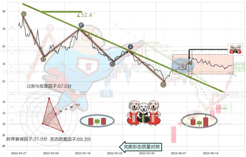 ➢ 🕰 价格走势在2022-06-08至2022-06-10期间形成两红夹一黑,残存影响值:3.31