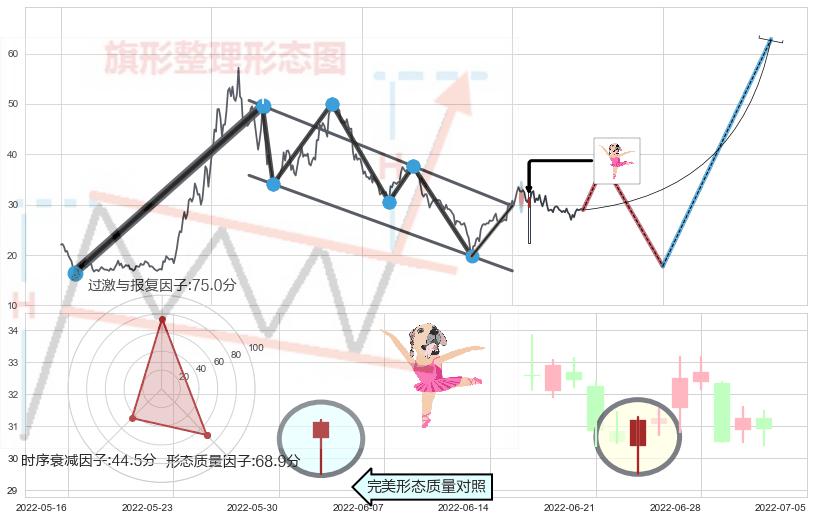 ➢ 【买1】: 激进型 买点 →(2022-06-08: 29.77 )形成突破降⚑旗形【整理】形态