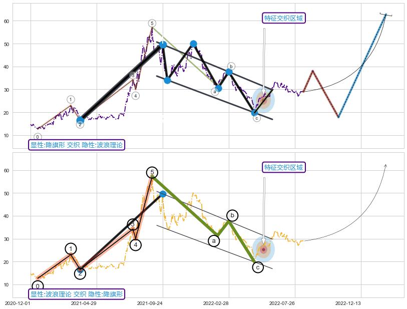 ➣ ['回调abc识别为: 【锯齿型调整浪】 ', '锯齿型:子浪535结构 ⓑ点振幅较小,ⓒ点继续发力远超ⓐ点结束位置']