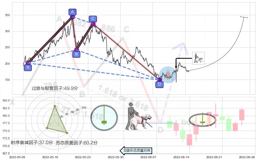 ➢ 仙人指路 🔜 谐波蝴蝶d拐点上涨支撑 综合量化分数:53.90 【偏多】