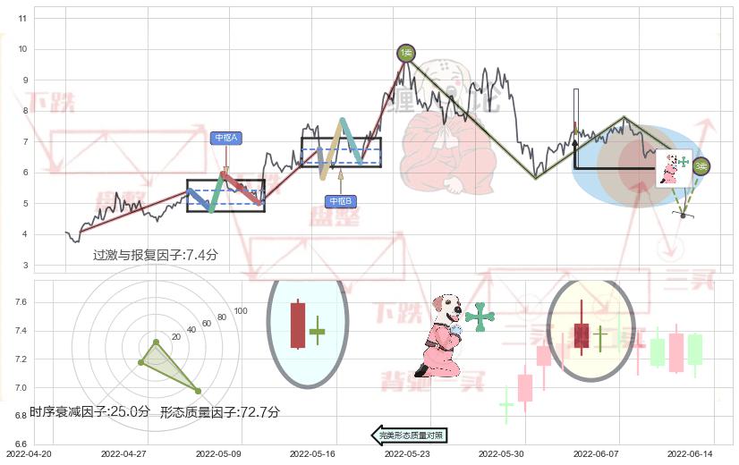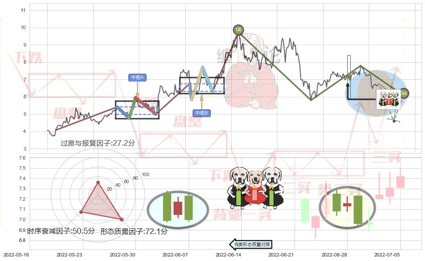➢ 🕰 价格走势在2022-06-27至2022-06-29期间形成两黑夹一红,残存影响值:-2.29