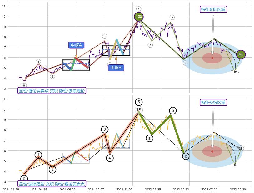 ➣ 缠论买卖点:上升缠:临近3卖-猜想击穿破位3卖后延续下跌趋势(大周期趋势均值回复后小周期持续趋势跟踪)