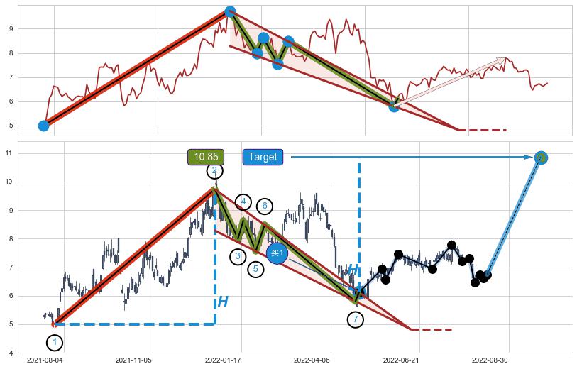 ➢ 2022-06-01到达第❶价格目标位置7.31