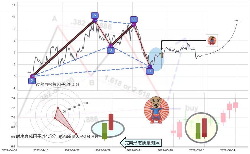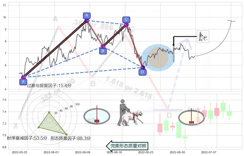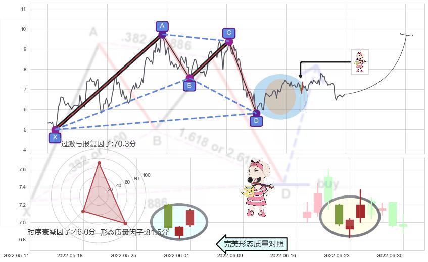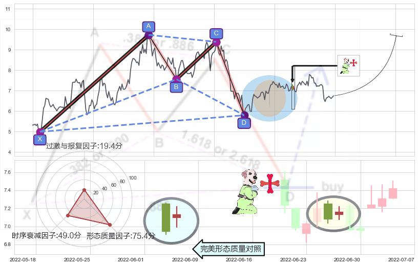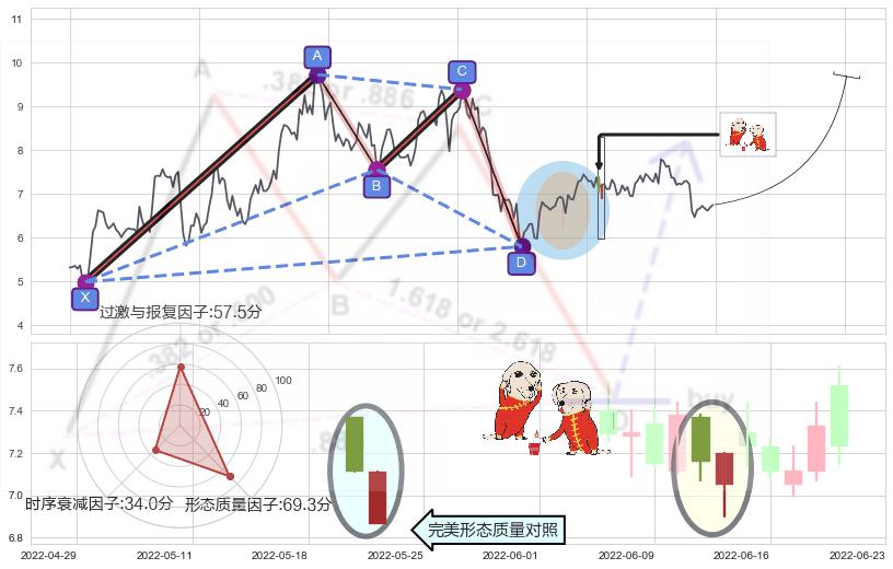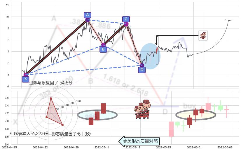 ➢ 曙光初现形态 🔜 谐波蝙蝠d拐点上涨支撑 综合量化分数:52.53 【中性】