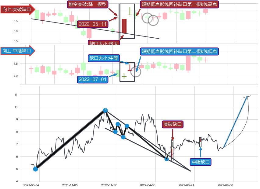 ➢ 低点影线(2022-05-17: 6.52 )→再次回踩→第一根k线高点(2022-05-10: 6.58 )