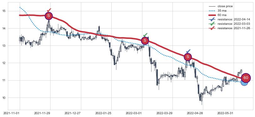 ➣ 60小时均线于(2022-06-02: 11.20)形成【金叉】基于【金叉历史模型】预测金叉后最高波峰价格: 14.32, 金叉后最高价格12.14,尚未达到预测最高波峰价格, 预期继续上涨