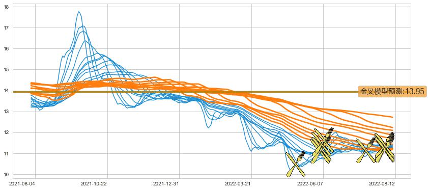 ➢ 90小时均线于(2022-08-04: 11.20)形成【金叉】基于【金叉历史模型】预测金叉后最高波峰价格: 13.93, 金叉后最高价格11.86,尚未达到预测最高波峰价格, 预期继续上涨