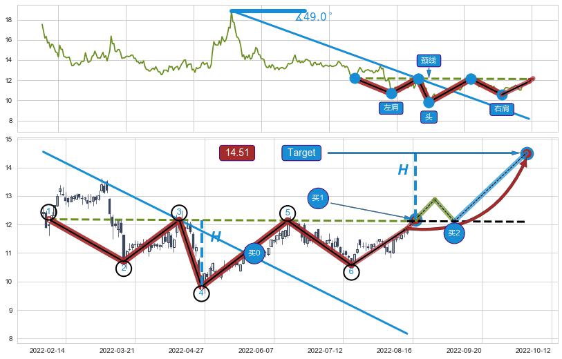 ➣ 最小反转涨幅→𝐇: 2.336 (头部与颈线垂直距离)