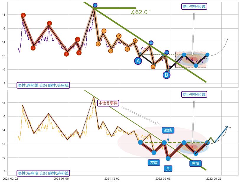 ➢ 最后的下跌趋势2021-02-22至2022-06-13:存在突破迹象,后续小反弹或者反转上涨