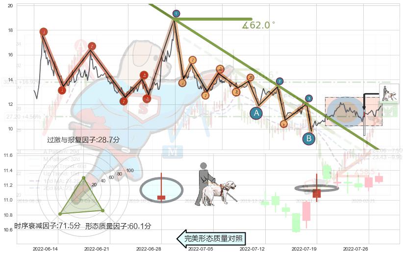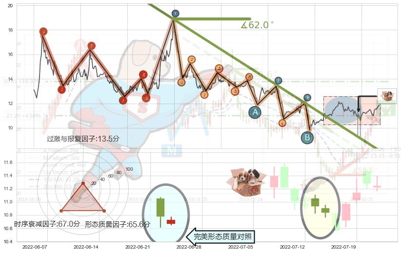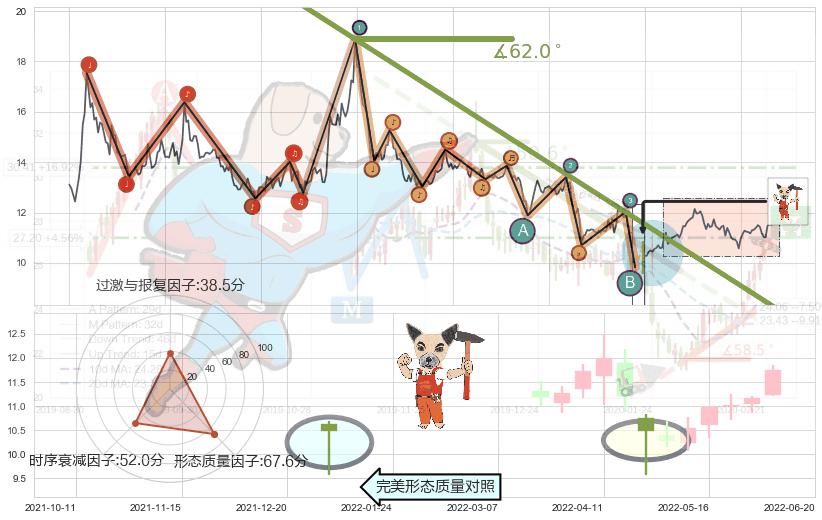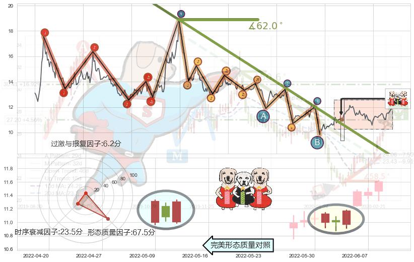➣ 2021-02-22-2022-06-13下跌趋势存在反转上涨[机会],其原下跌趋势的阻力位(8.17)已被突破[强支撑信号],原下跌趋势角度: 62.0˚