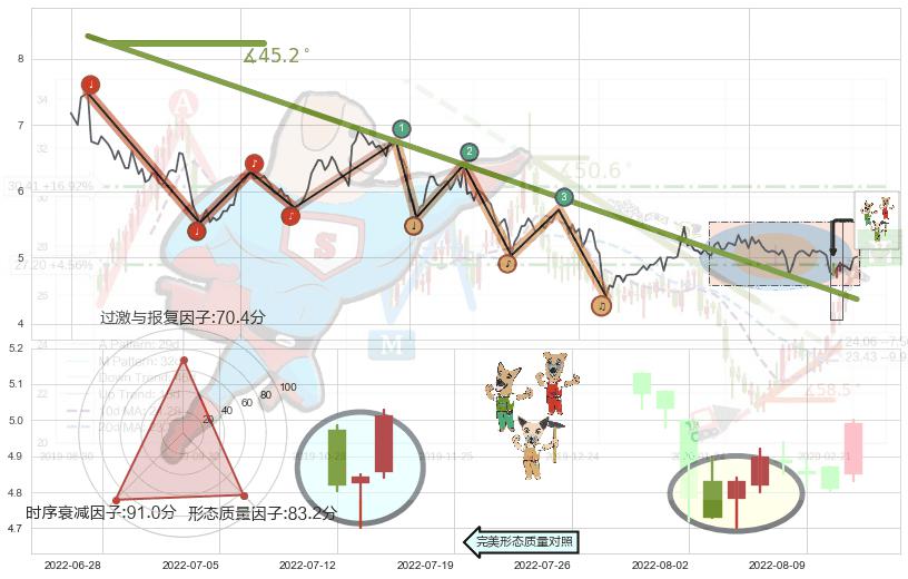 ♘ 阻力价格位5.82,可信任强度75.58%,距离最后交易2022-08-12形成的收盘价格5.01相差 +16.11%