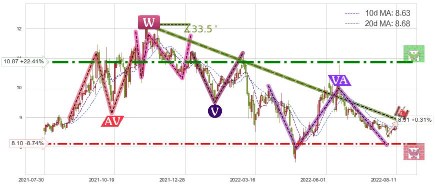 ➣ AI预测: 假定反转如期而至,第❷价格目标位置(2022-08-26, 9.49)