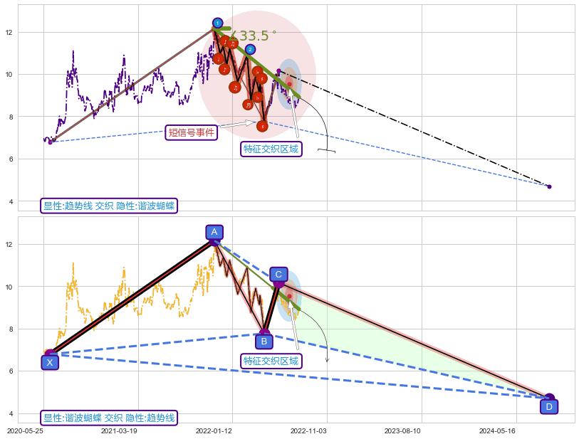 ➢ 趋势线属【短级别信号事件】谐波蝴蝶属【长级别信号事件】长短周期组合信号事件, 短长事件长度比34.09%