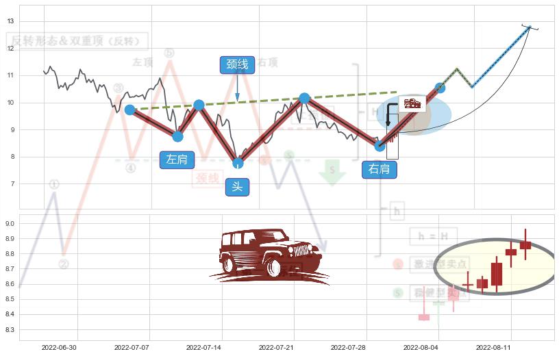 ➢ AI预测: 假定反转如期而至,第❸价格目标位置(2022-09-13, 10.16)