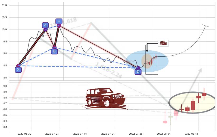 ➣ 已完成【鲨鱼】形态起点X: 2022-05-18, 终点D: 2022-08-02, 共54交易日