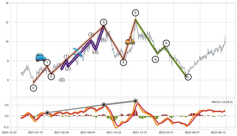 ➣ ['回调abc识别为: 【锯齿型调整浪】 ', '锯齿型:子浪535结构 ⓑ点振幅较小,ⓒ点继续发力远超ⓐ点结束位置']