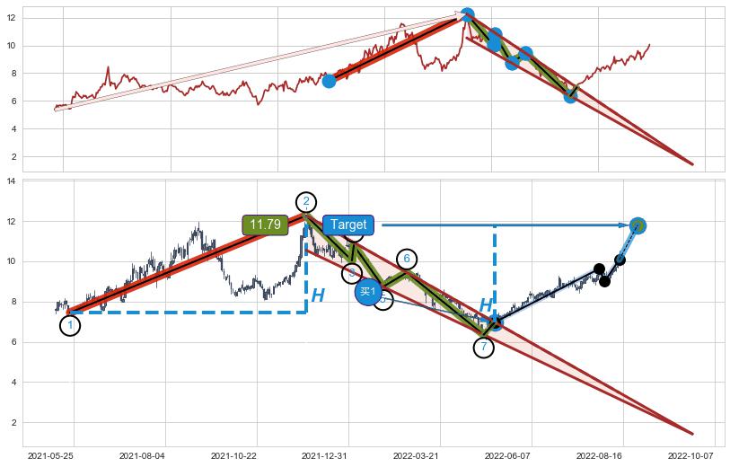 ➢ 最小中继整理涨幅→𝐇: 4.82 (𝐇楔型旗杆的长度:楔型起点→顶点)