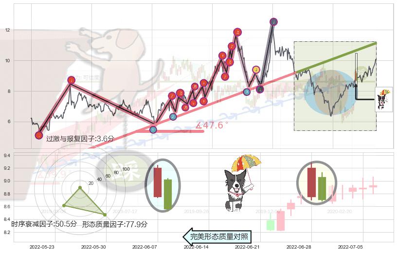 ➢ 🕰 价格走势在2022-06-17至2022-06-23期间形成上升三部曲(升势三鸦),残存影响值:1.76