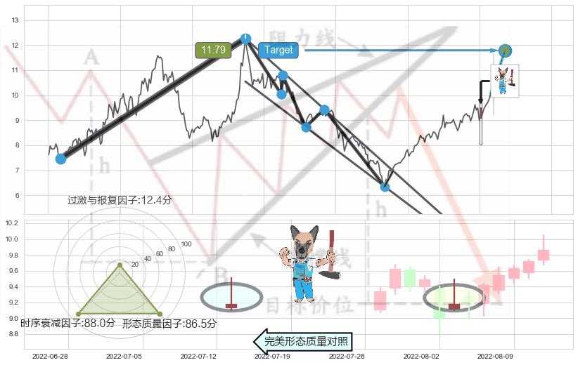 ♘ 阻力价格位11.83,可信任强度73.90%,距离最后交易2022-08-12形成的收盘价格10.07相差 +17.44%