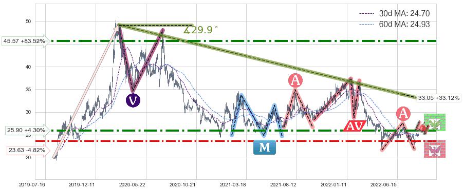 ♘ 支撑价格位23.63,可信任强度69.88%,距离最后交易2022-08-12形成的收盘价格24.83相差 -4.82%