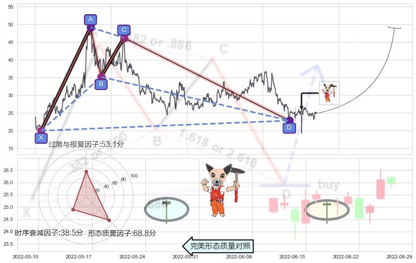 ➢ 曙光初现形态 🔜 谐波蝙蝠d拐点上涨支撑 综合量化分数:54.86 【偏多】