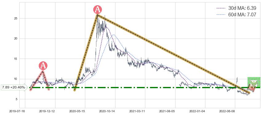 2022-01-28: 第一阻力位7.89有效抑制了下跌浪,成功阻止了价格的继续下跌。