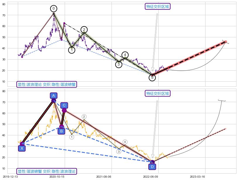 ➢ 波浪理论与谐波螃蟹信号事件周期长度级别相同,同周期信号事件