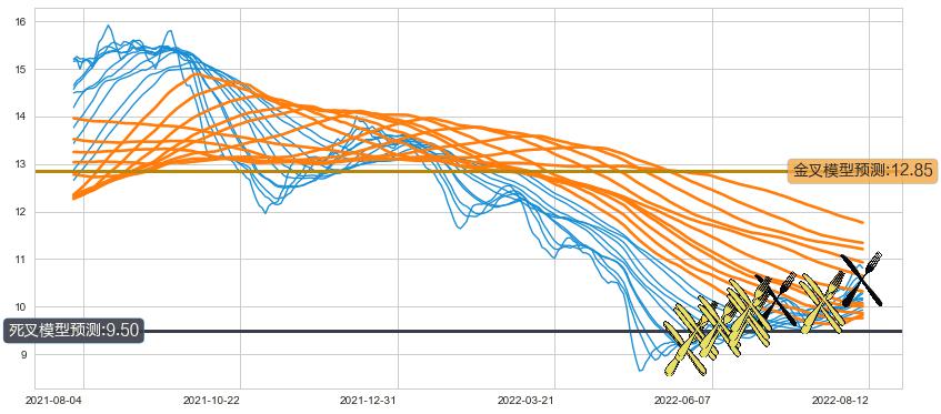 ➣ 13小时均线于(2022-08-11: 10.54)形成【死叉】基于【死叉历史模型】预测死叉后最低波谷价格: 9.56, 死叉后最低价格10.53,尚未达到预测最低波谷价格, 预期继续下跌