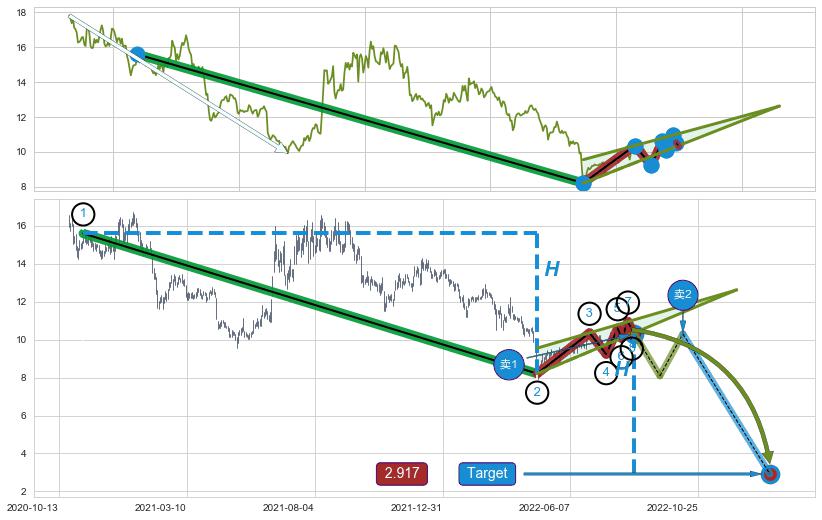 ➣ AI预测: 假定反转继续,第❷价格目标位置(2022-10-17, 13.23)