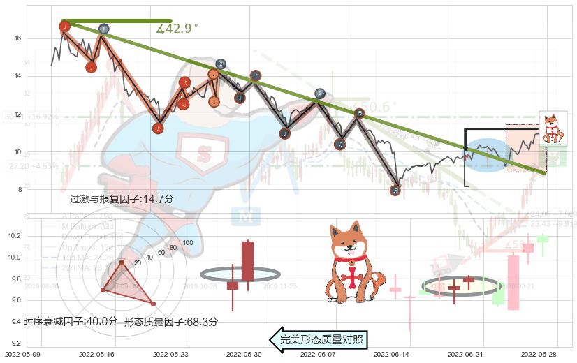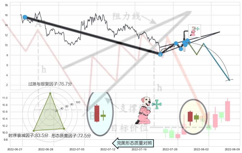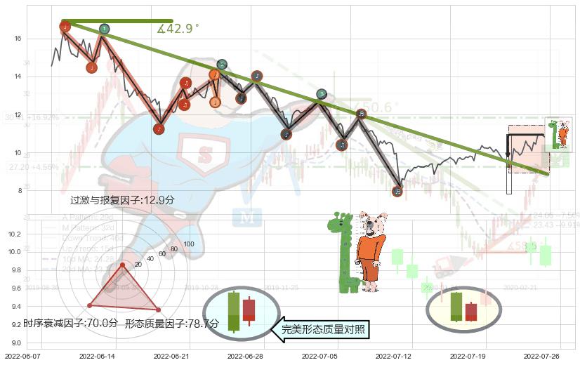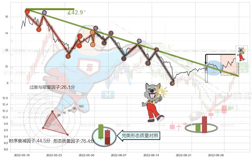 ➣ 2021-08-11-2022-06-27下跌趋势存在反转上涨[机会],其原下跌趋势的阻力位(8.85)已被突破[强支撑信号],原下跌趋势角度: 42.9˚