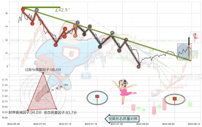 ♘ 阻力价格位16.22,可信任强度93.83%,距离最后交易2022-08-12形成的收盘价格10.53相差 +54.01%